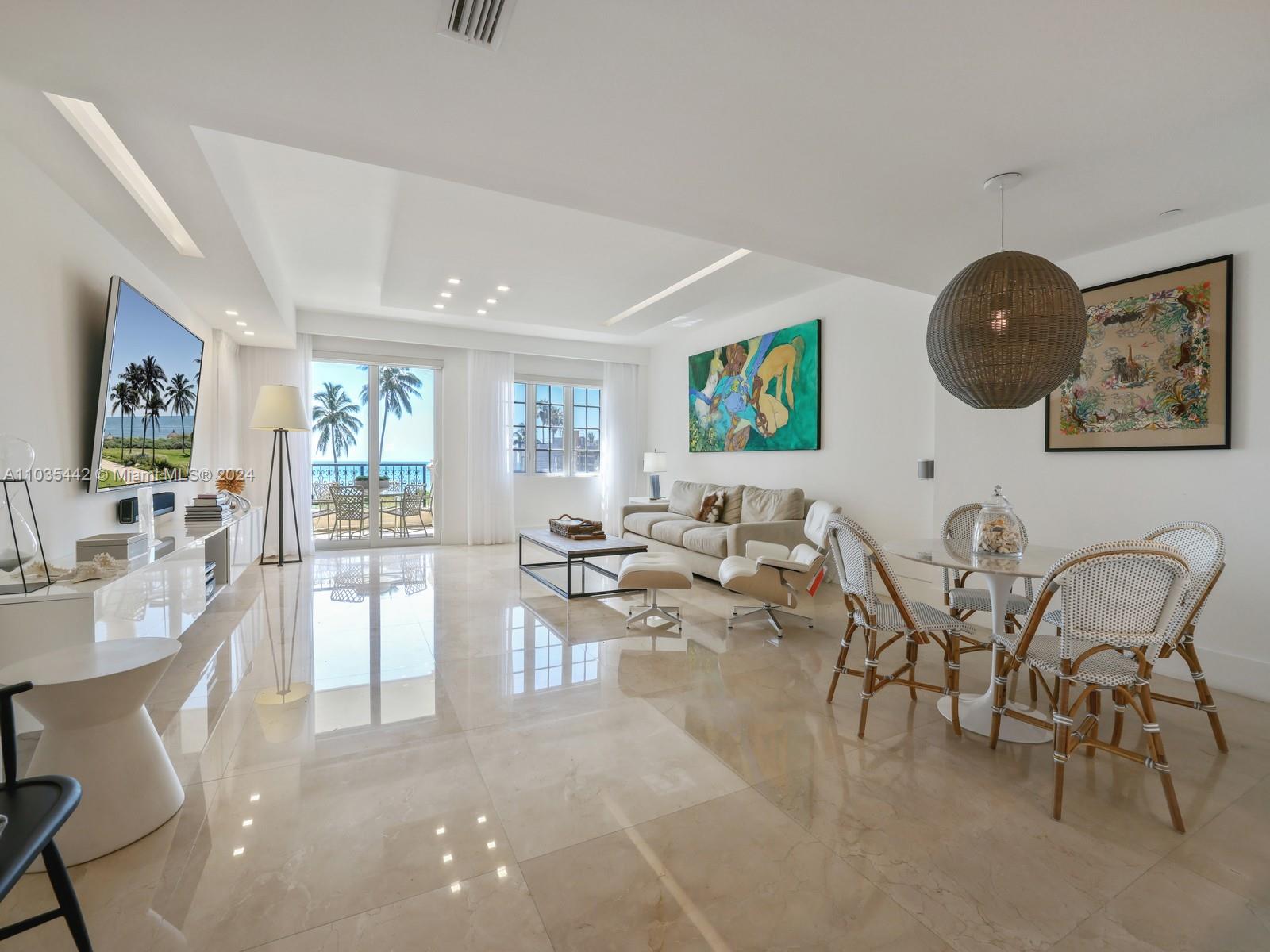 SEASIDE CONDO UNIT 19223 UNDIV 1.67554 INT IN COMMON ELEMENTS OFF REC 14165-2954 OR 20404-3914 0502 1 COC 24116-0684 12 2005 1 BRAND NEW renovation of this direct ocean view 2BR plus den Seaside village unit. Be delighted and mesmerized by the gorgeous sunrises and fresh ocean breezes. Located just steps away from the Fisher Island private resident beach and inviting beach side pool boasting an al fresco hot tub that can be enjoyed night and day. White, bright top-of-the-line finishes, reconfigured to perfection with ample closets, large comfortable gourmet kitchen, garage parking and golf cart for tenant’s use. Available for immediate lease. $35K/month for High Season.
